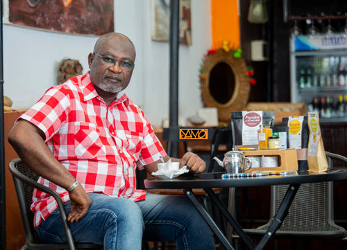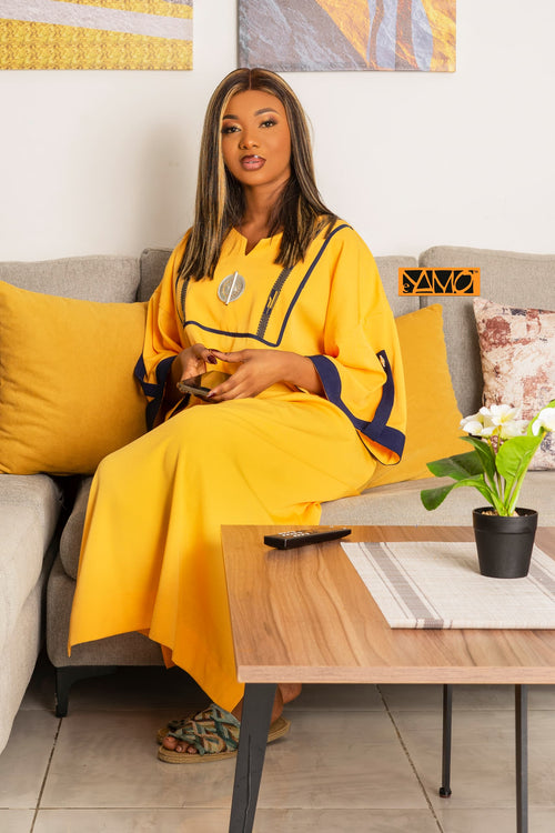 Boubou baladeuse jaune assortie de Poids Baoulé
