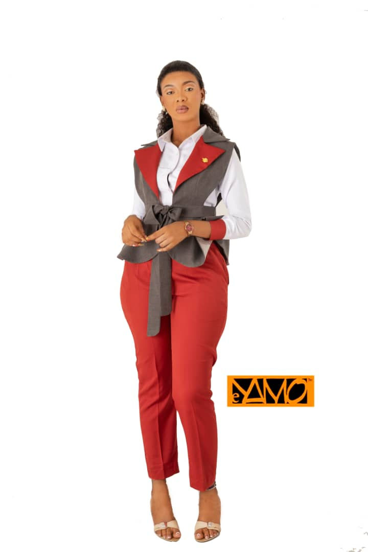 Ensemble veston gris & Poids Baoulé & chemise blanche & Jupe Rouille